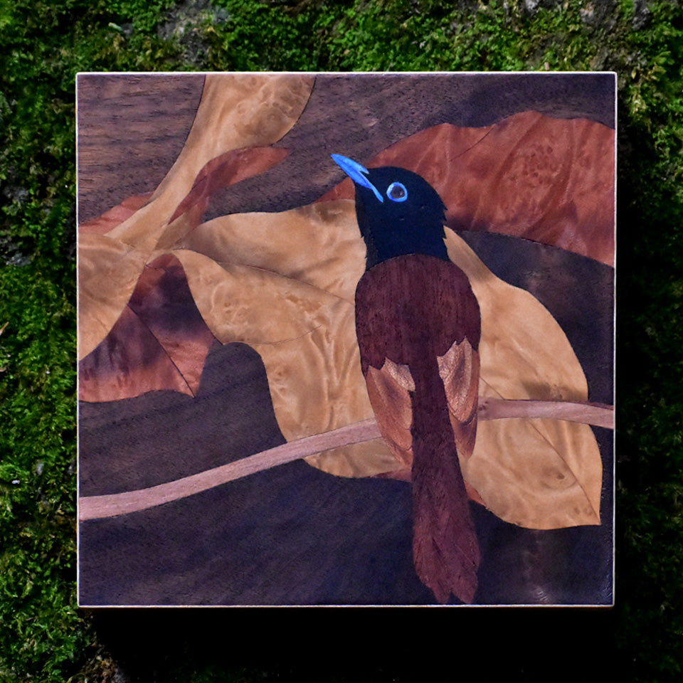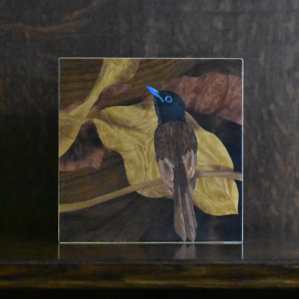 木象嵌サンコウチョウのパネルです。